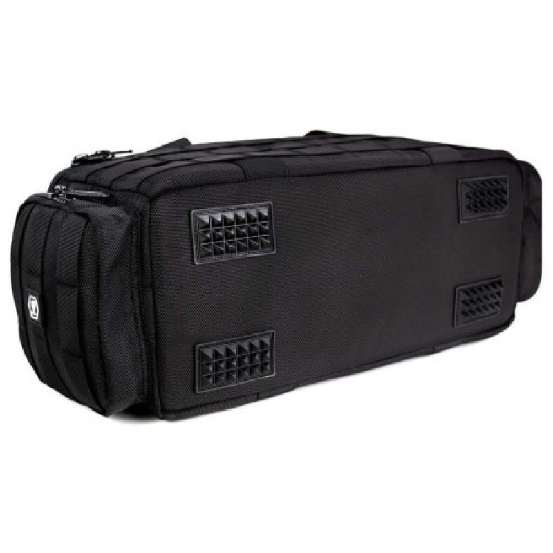 Экранирующая сумка изготовлена из прочной, водоотталкивающей нейлоновой ткани и двухслойной экранирующей ткани Mission Darkness TitanRF Faraday Fabric. Сумка имеет сбоку 2 не экранирующих кармана и крепление Molle, позволяющее повесить экранирующую подсумку Mission Darkness Molle Faraday Pouch. Сумка имеет по периметру мягкий короб, который предназначен для защиты хрупкой электроники. Это единственная экранирующая сумка на рынке с коробом.