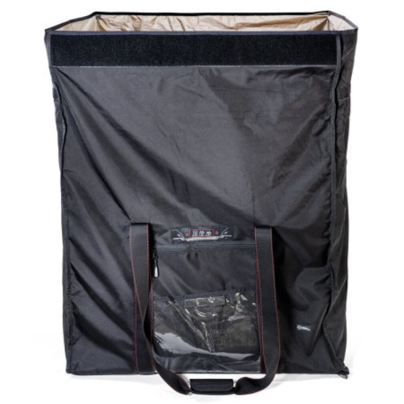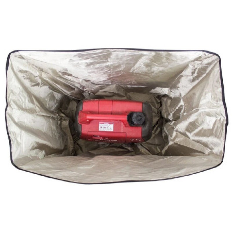 Очень большой размер и объем Revelation EMP Shield позволяет разместить в сумке большинство портативных электрических (солнечных) или дизельных генераторов, а также сопутствующие аксессуары, такие как шнуры питания и солнечные панели. Сумка имеет съемное полипропиленовое пластиковое основание, закрепленное в нижнем отделении на молнии, чтобы обеспечить достаточную поддержку для габаритных предметов. Ручки с мягкой обивкой и несущей тесьмой полностью обхватывают бока и дно, выдерживая вес тяжелых предметов при транспортировке. На передней стороне сумки расположено глубокое неэкранированное отделение на молнии и большой прозрачный карман.