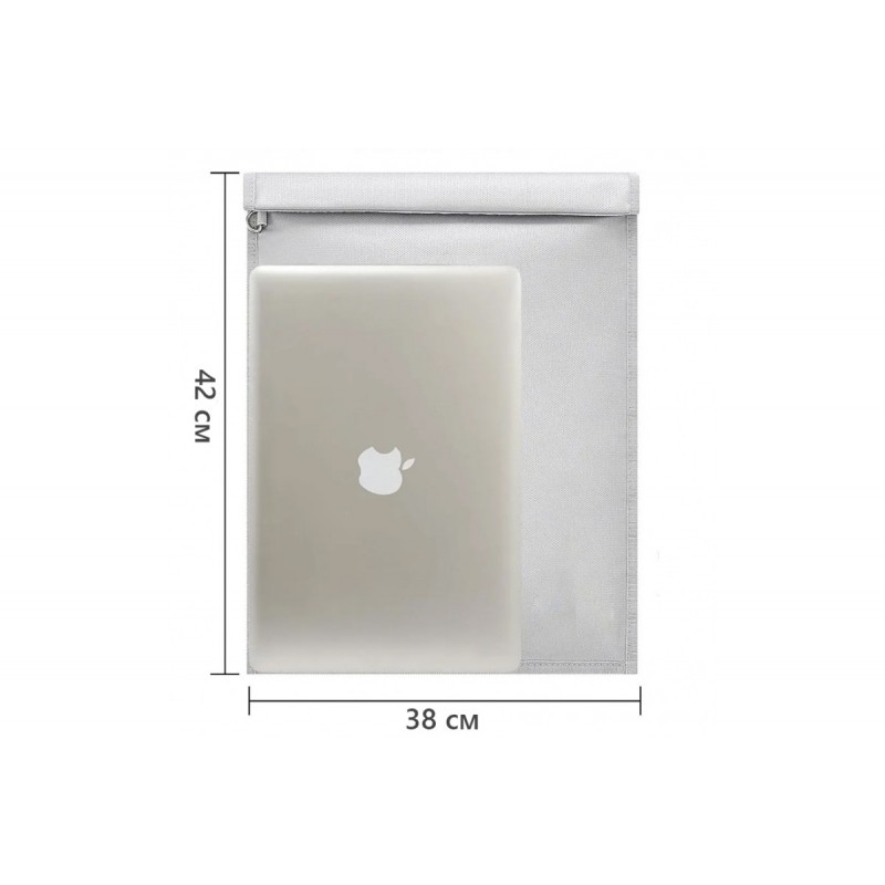Новый экранирующий чехол Фарадея Velcro-Fiberglass Grey XL для планшетов и ноутбуков 15.6" из сверхпрочной и износостойкой ткани Silicone Coated Fiberglass - стекловолоконная ткань с силиконовым покрытием, разработанная с помощью усовершенствованного процесса, при котором пропитанное стекловолокно покрывается высококачественным силиконовым каучуком. Данная ткань обладает исключительной термо- и влагостойкостью, огнестойкими свойствами. Внутри высококачественные экранирующие материалы, обеспечивающие 100% экранирование всех сигналов мобильного телефона: