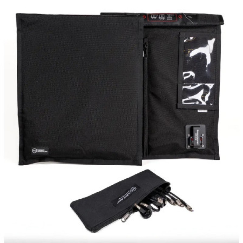 Чехол Mission Darkness Non-window Charge & Shield Faraday Bag изготовлен из баллистического нейлона и двухслойной экранирующей ткани TitanRF Faraday Fabric. Экранирующий чехол Фарадея предназначена для блокировку беспроводных сигналов GSM (включно 5G), GPS, Wi-Fi (2,4 & 5 МГц), Bluetooth, RFID, NFC и всех радиосигналов до 40 ГГц. Чехол этой серии имеет двусторонни USB фильтр с внешним замком для кабеля и технологию закрытия NeoLok. С помощью USB порта, устройства находящиеся внутри будут постоянно заряжены, что сокращает время извлечения данных с исследуемого устройства.
